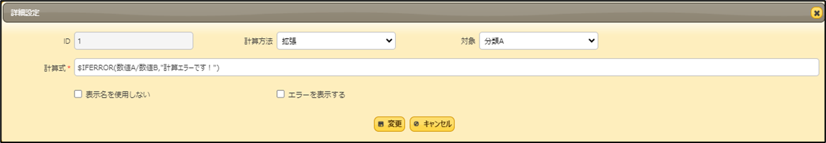 | エラーの場合の値 | 計算式 | 必須 | 第一引数「値」がエラーの場合に返す値、数式、計算式 |